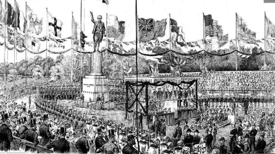 The ceremony of lowering the flag which had covered the statue now took place amid loud applause, when immediately after a chaplet of flowers appeared encircling the head of the renowned circumnavigator. This chaplet was the gift of a young Australian whose name happened to be that of the renowned captain.