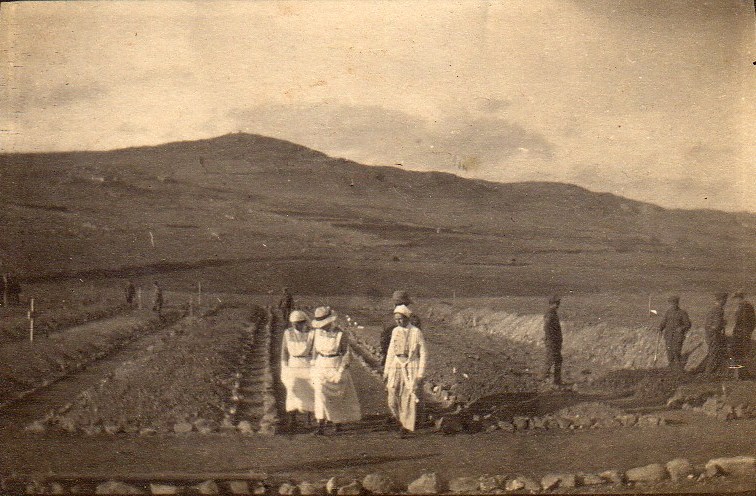 ANZAC Graveyard at Lemnos- [no inscription - Nurses, soldiers, a graveyard, probably Lemnos, late 1915] [Joseph Cecil Thompson - presumed photographer]