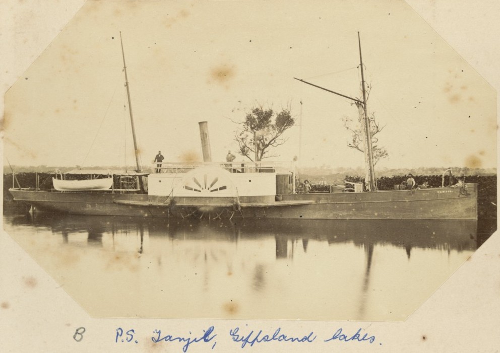 P.S. Tanjil, Gippsland Lakes. [Victoria] circa 1873-1882. Tanjil was generally spelt 'Tangil'. Image No: b22751, courtesy State Library of Victoria.