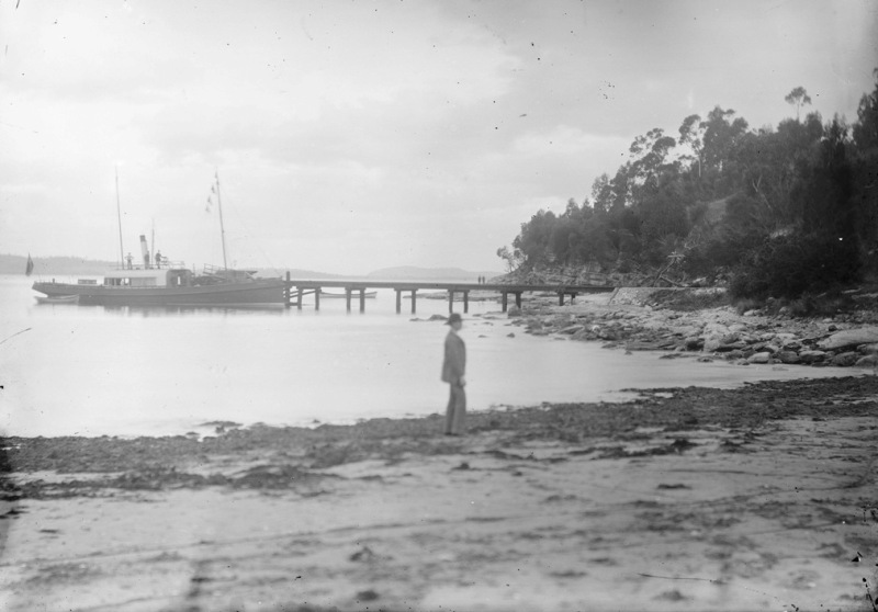 Kingston Beach, Sandy Bay on the Derwent River, Tasmania; showing jetty and ferry steamer, 1900. Image NS1013-1-399, courtesy State Library of Tasmania.