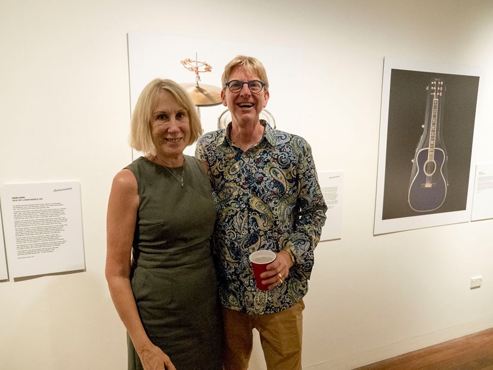 Chuck Bradley and Lindy Morrison at the opening of Chuck's exhibition Instrumental, drummer with Go Betweens in front of her Instrumental photo - well worth the look! photo courtesy of photographer Hugh Hamilton