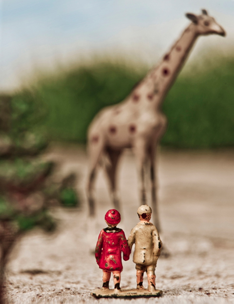 That led from an antique collector friend of mine. I’d done a shot of the giraffe and the two kids holding hands just in front of my boatshed on the island (Scotland Island). I sent this image to my friend and asked him what he thought, did he think I was barking up the wrong tree.