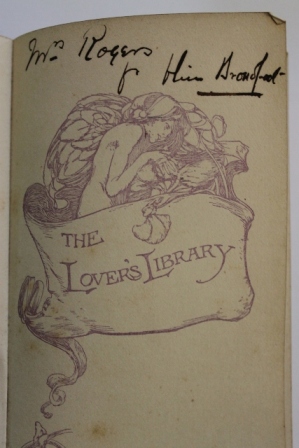 The other is Love Poems of Elizabeth Barret Browning Including The Sonnets from the Portuguese, published and copyrighted 1902 by John Lane, London and New York. John Lane (14 March 1854 – 2 February 1925) was a British publisher. Originally from Devon, where he was born into a farming family, Lane moved to London in his teens. After entering the London book trade he became co-founder of The Bodley Head, originally a firm that dealt with antiquarian books. They later went into publishing. Lane is mainly associated with publishing controversial and audacious texts, especially for a small, sophisticated audience. Examples are the periodical The Yellow Book (1894 - 1897) and Lane's Keynote Series, which included contentious material such as Grant Allen's novel The Woman Who Did (1895), Victoria Crosse's immediate reaction to it, the novel The Woman Who Didn't (1895), and H.G. Wells's novel about his affair with Amber Reeves, The New Machiavelli (1911).