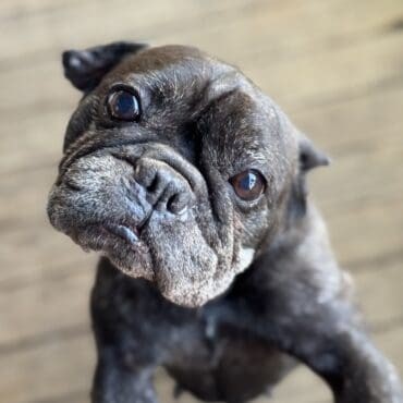 Peggy is just the sweetest most affectionate girl. She came to us with a severe head tilt. Upon vet examination, she has terrible middle ear infection that is affecting her balance. She also has loose and worn teeth that needed urgent attention. She has had a dental and we have all her ear issues under control but going forward she will need a diligent owner to care for her ears, so they never get into that state again. She has bred many, many pups throughout her life. She is such a sweet gentle lady. She is very calm and quiet and so appreciative of everything you do for her. Our trainer says: " She is a gentle sweet dog. Very food motivated. She interacts nicely with kids and copes with child play and noise. She is probably more child tolerant than child oriented." She is social with other small dogs and walks well on lead. She has a smooth coat and weighs 11.9kg. She is best suited to a family who have had brachycephalic breeds before and are equipped to care for her well. She suits apartment living and FT hours alone. She is desexed , fully vaccinated, heartworm free and chipped. Her adoption cost is $800.
