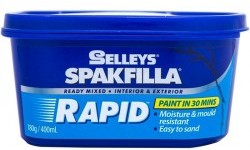 Selleys Spakfilla Rapid - 180g. Interior and exterior. Easily sanded. Includes filling spatula.