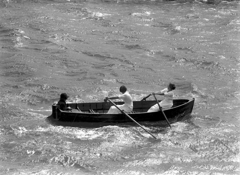 Mrs J Wilson and Miss Hastie, Careel Bay ladies, winning the Ladies Double Sculls at the Pittwater Regatta, during the 2nd Regatta for 1921 - held on December 31st. This image appears in The Sydney Mail, 4 January 1922, page 18. The caption for the image includes the following details: 'The winners had a handicap of 15s, the distance being a mile. Mrs Hendrie and Miss Beaumont were second, and Mrs Allen and Miss K. Bolt (3s) third.' Image 12152 courtesy Australian National Maritime Museum. See: PITTWATER REGATTA : THE GOVERNOR-GENERAL'S WIN. (1922, January 4). Sydney Mail (NSW : 1912 - 1938), p. 18. Retrieved from http://nla.gov.au/nla.news-article169769804
