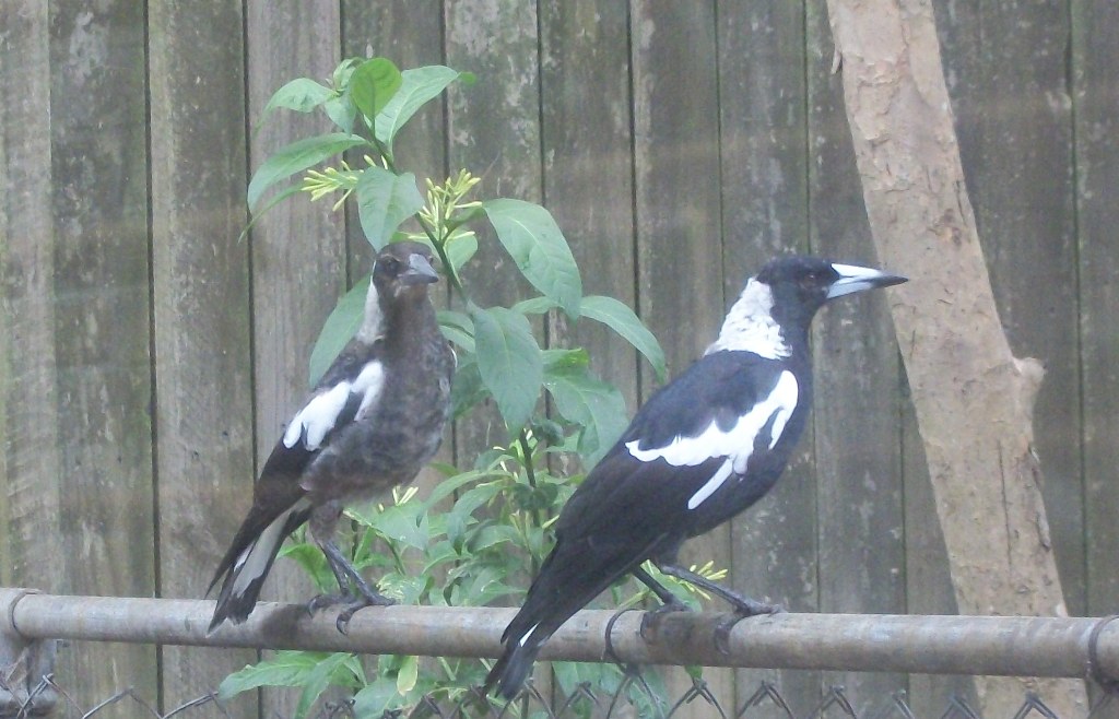 Young Galah (right) with Parents, Avalon 11.1.2012. Below: Fledgling Magpie 14.1.2012