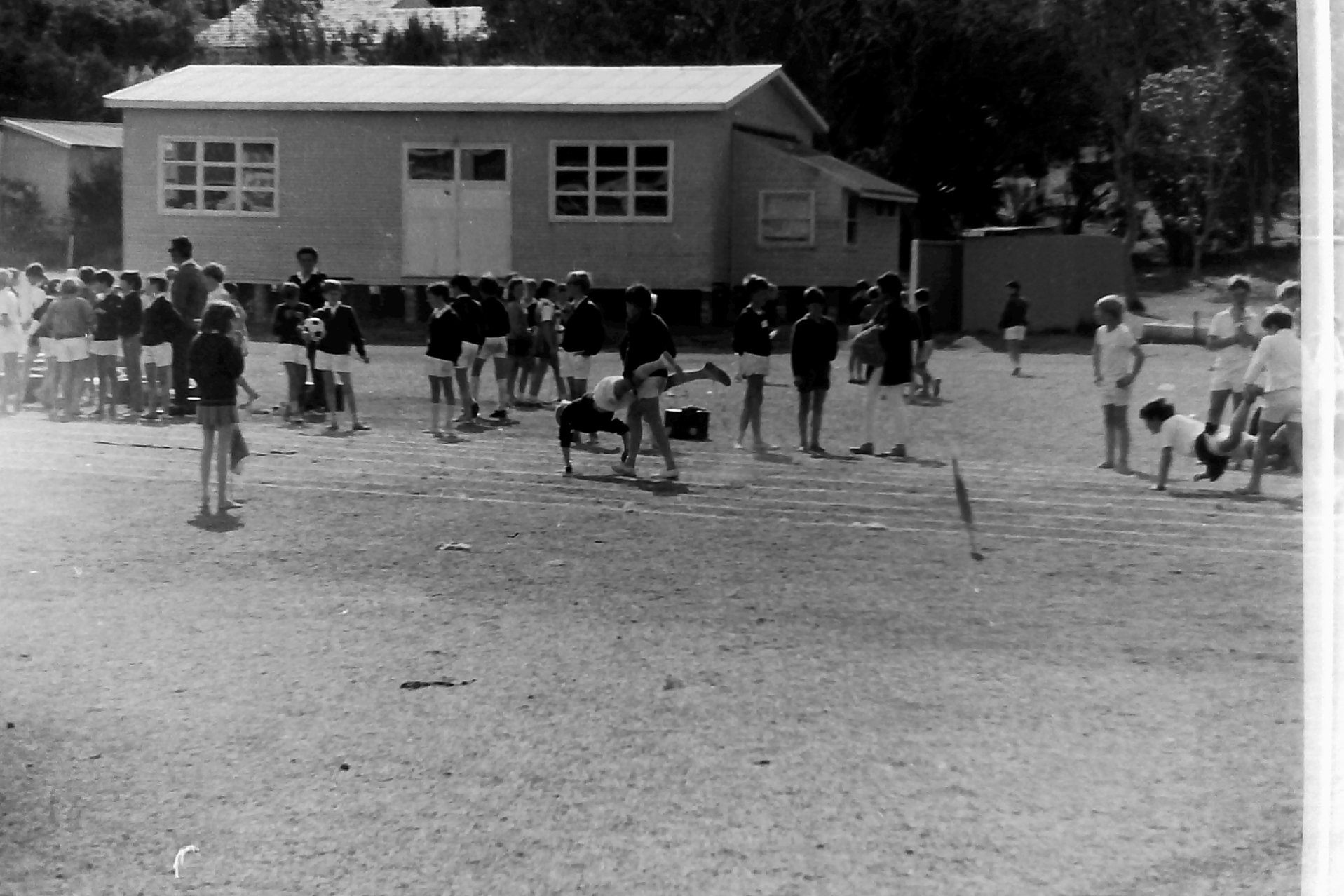 1970s sports day – Brian Friend; The old Avalon Police Station on the left at the back.