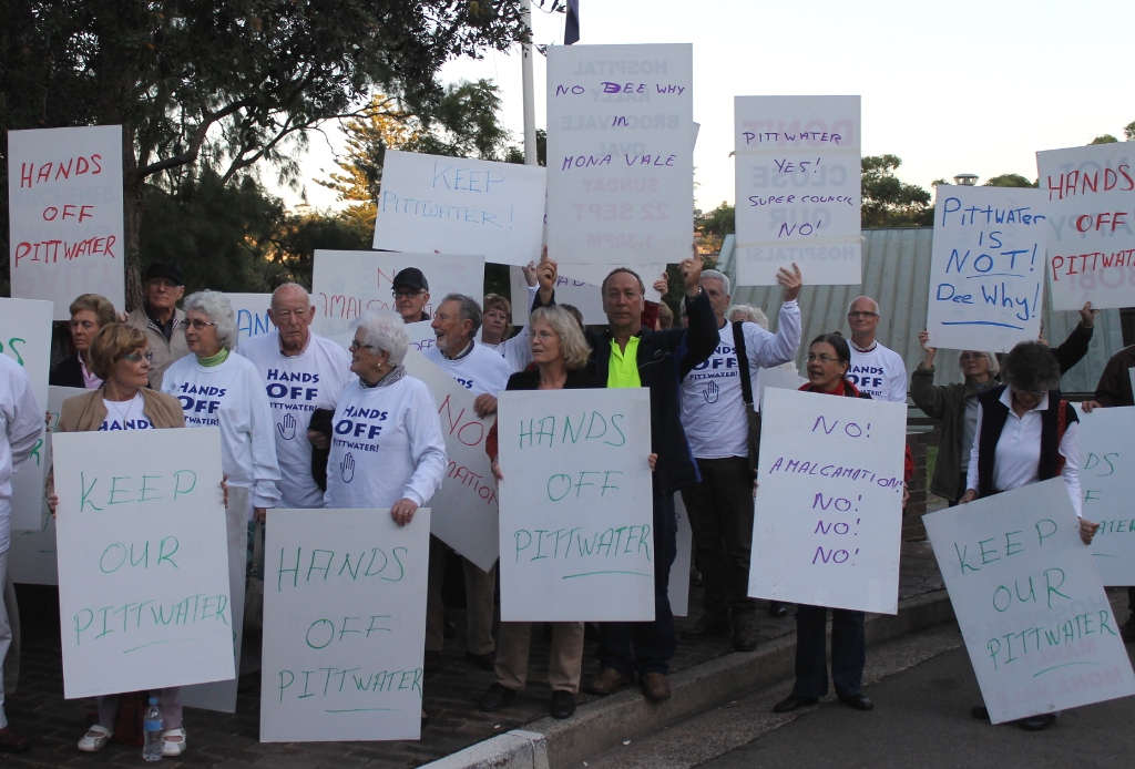 The strength of opposition from Pittwater residents to a recommendation from the Local Government Review Panel to a recommendation for the Local Government Review Panel that Pittwater, Warringah and Manly councils should be amalgamated into one super council, was demonstrated at both the rally outside Warringah Council Chambers and submissions to a hearing by the panel on 4th June 2013.