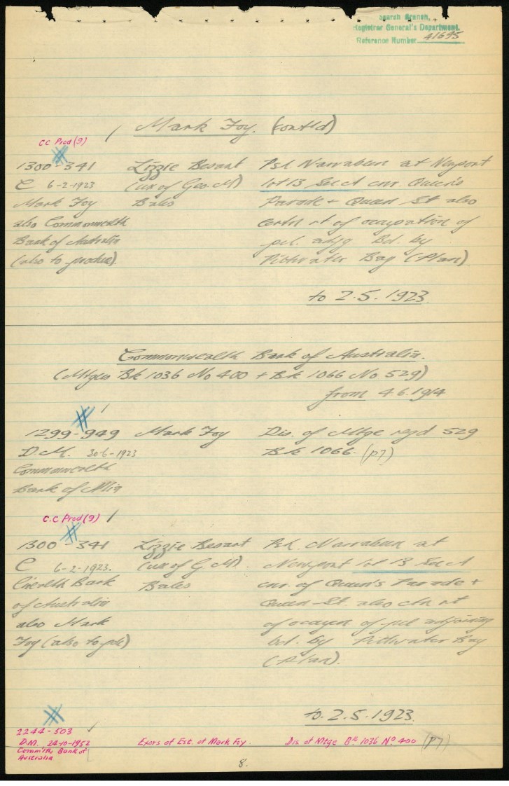Township of Newport, Pittwater Sec A, lot 1 £40 10s-Mr G F Want, lots 2 and 3, £70-Mr. Gilchrist, lot 4, £42 5s-Mr G F Want, lot 5, £36-Mr Hinton, lot 6 £36, and lot 7, £38 10s-Mr Bishop, lots 8, 9, 10, and 11, £156-Mr J W Foster, lots 12 and 13, £80- Mr G F. Want, sec B, lots land 2, £17 10s-Mr G F. Want, lots 3 and 4, £17 10s-Mr Want, lots 5,6, and 7, £24 15s-Mr Gilchrist, sec C, lot 1, £22, and lot 2, £17, Mr John Dowd , sec D, lot 2, £11, and lot 3, £13 15s-Mr Want, lots 4, 5, and 6, £36-Mr Bennett, lot 7,£12-Mr Jeanneret, lots 10,11,and 12, £42-Mr Jeanneret, lots 13 and 14, £28,10s-Mr S Swain, sec L, lots 1,2, and 3, £48, -Mr. J. Lix ; lot 4, £15-Mr. N. Bungay ; lots 5, 6, and 7, £55, 19s-Mr. N. Bungay ; lots 8, 9,10, and 11, £68-Mr. Want ; lot 12. £15-Mr. Mullarky; lots 13, 14, 15, and 16, £64 … PROPERTY SALES. (1880, November 27). The Sydney Morning Herald (NSW : 1842 - 1954), p. 3. Retrieved from http://nla.gov.au/nla.news-article13477065