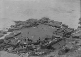However, this was not the only early venture as here a salt-making venture was carried out, directly opposite Salt Pan Cove at Newport, and here too, ship building took place, again on the north facing end of the island, the last known one to be built and launched from here being the Geordy and from the current site of the Tennis Wharf.