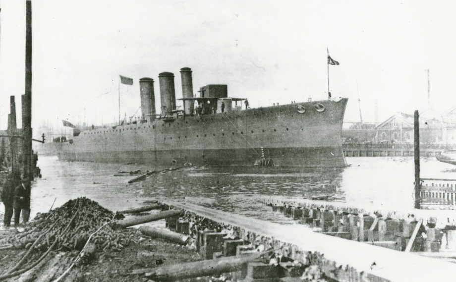 Previously we have shared stories on the lead into the establishment of our Navy and the First Fleet Review. One of the ships built for this new Navy was the HMAS Sydney, a Chatham class light cruiser of the Royal Australian Navy (RAN). Sydney was laid down by the London and Glasgow Engineering and Iron Shipbuilding Company at Glasgow, Scotland, on 11 February 1911. The ship was launched on 29 August 1912 by the wife of Admiral Sir Reginald Henderson. Sydney was completed on 26 June 1913, and commissioned into the RAN that day. The ship cost approximately 385,000 pounds to build.