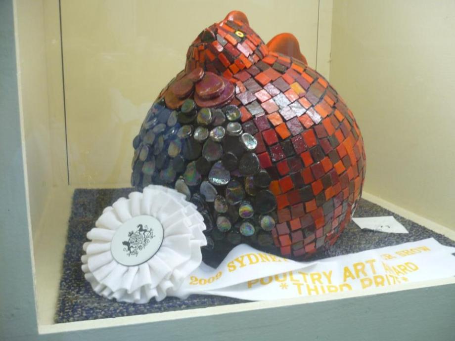 This is another sculpture, she’s called ‘Little Red Rooster’ and won Third prize at the Royal Easter Show around 4 or 5 years ago. This was my first attempt at mosaics.