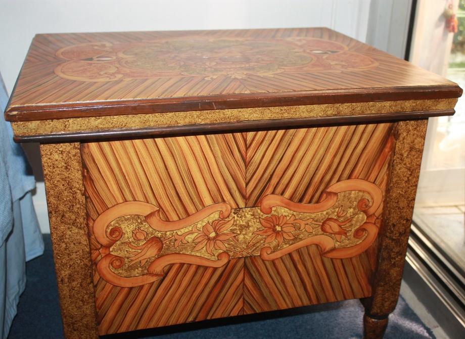 This piece I found at Narrabeen junk shop, the one that burnt down, and the technique I used here is called ‘Intarsian’; which is making it look like wood inlay.