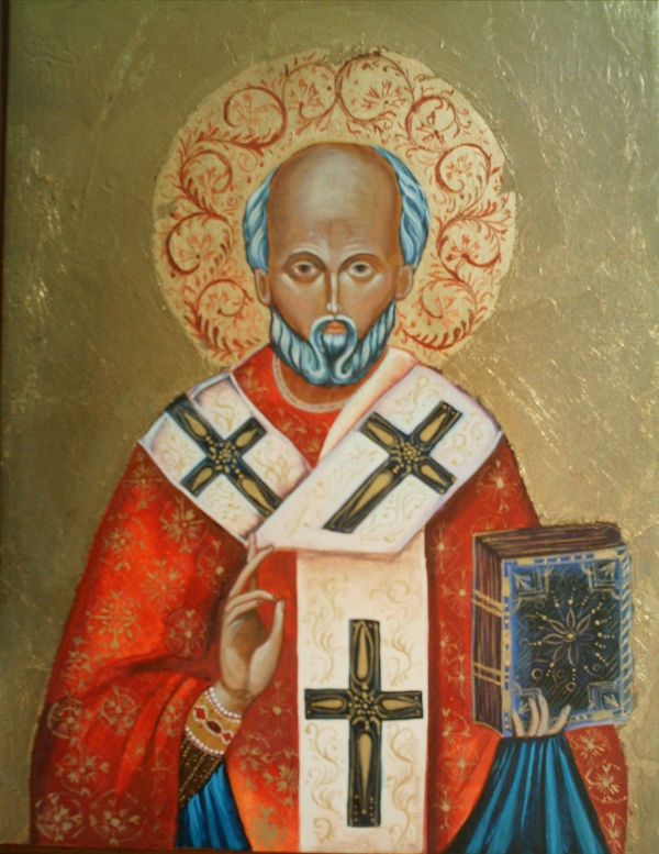 Lorrie's “Saint Nicholas Russian icon” Painted with Russian honey paint and gold
