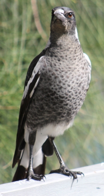 Fledgling magpie picture by A J Guesdon, April, 2014.