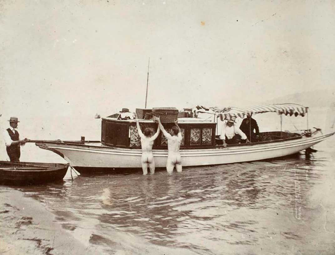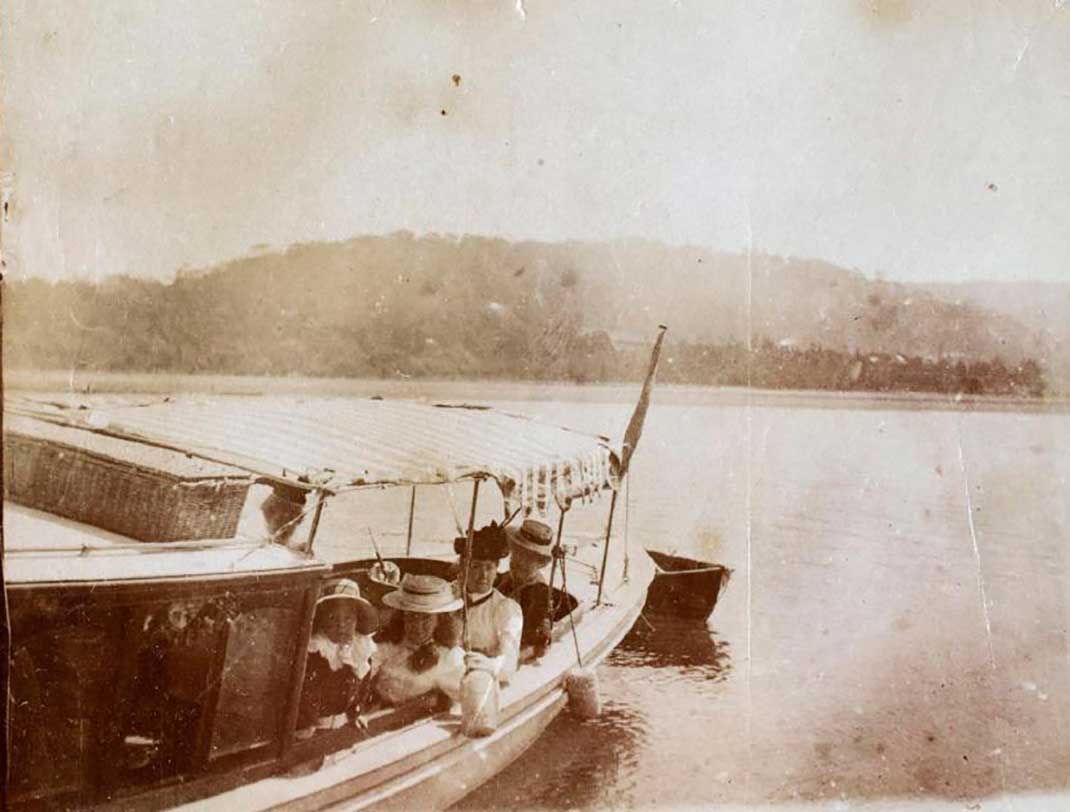 Mark Foy with family and friends on catamaran Flying Fish, 1890s - ANMM Collection, gift from Mary Shaw.