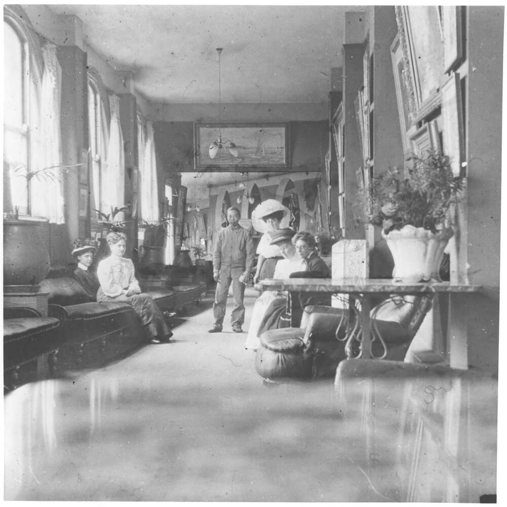 Gallery next to the billiard room of the Hydro Majestic Hotel, Medlow Bath, New South Wales, circa 1910 - courtesy National Library of Australia. Image No.: nla.obj-146216316-1