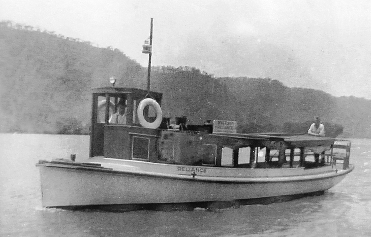 MV Reliance was built by Goddards of Palm Beach in 1919 and commissioned for the Hawkesbury River passenger and mail run from Brooklyn to Wisemans Ferry via Spencer. It is credited with moving the first car from Newcastle across the Hawkesbury river in 1925 and in 1930's, Reliance ferried workers building the road to Wisemans, to camps at Haycock mountain.