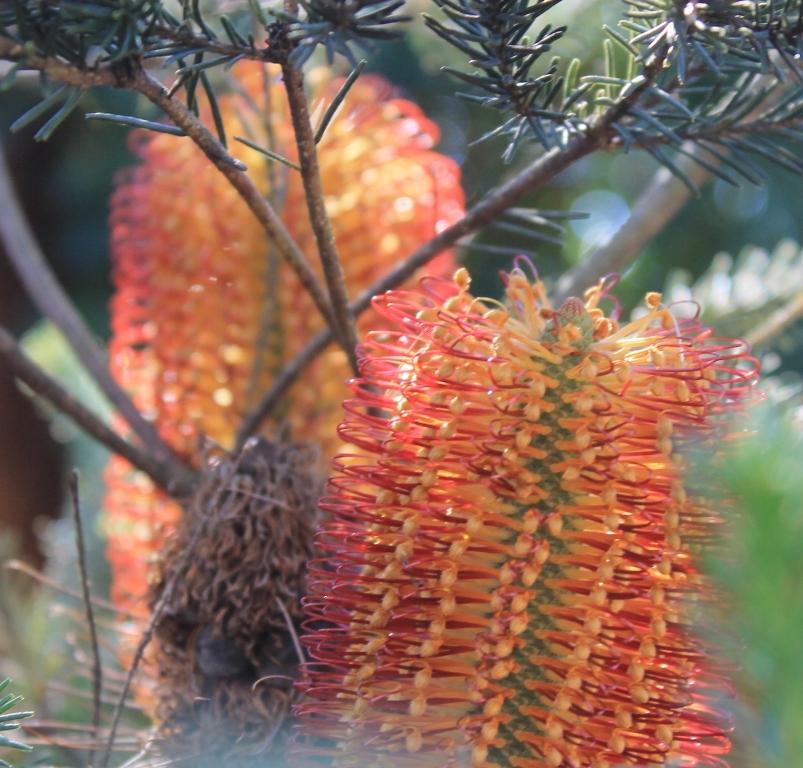 There is also a nice golden and orange tinge over many plants during this weeks of Winter, so we went and took some pictures of some of these for you too. Perhaps when you go for your walks this week you could look around, see how many different kinds of plants have this golden tinge - some of these, like fir trees, naturally turn gold and yellow at this time of the year on their fringes, others, like the wattles, are plants that flower this tiem of year in many shades of creamy white to yellow and gold. Banksias, also in many shades of yellow, are flowering now and will into Spring weeks.