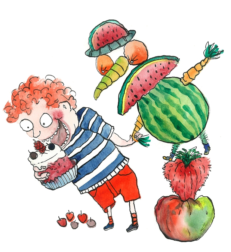 From an illustrator’s point of view they are an irreverent look at how kids treat food and how they can play with food, have fun with food, but good food obviously. The whole message behind them is to eat properly and eat well and eat more fruit and vegies. But it’s about food from a kid’s point of view and for me to illustrate them is about finding that edge. It’s more play than learning, but they go hand in hand without kids realising it. They’re really fun and there’s a humour in them that kids really relate to.