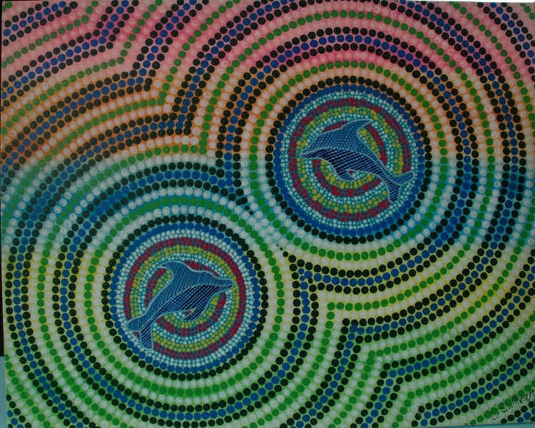 Second Prize – An incredible Aboriginal “Dolphin Dot Painting” kindly donated by Kate Sullivan from Brewarina NSW