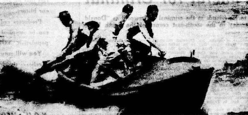 COME astern! . . . Come astern!' The men with the sweep calls; braces his body, tauts his muscles. . .Swiftly the great wave looms above the boat, like a giant bent on devouring. . A sudden lift, a creaking of timber, a smothering of foam. A split second and the boat is lifted and shot forward at tremendous speed. The four rowers go to the sweep's assistance. With muscles strained and faces grim, they assist to keep the boat straight on its exhilarating rush to the beach . . . But sometimes the boat turns, is capsized, and crew, boat, and oars, are mixed together in foaming water. (By E. THOMAS). Surf Boats For Thrills Says Australia. (1930, December 24).Referee (Sydney, NSW : 1886 - 1939), p. 18. Retrieved from http://nla.gov.au/nla.news-article131158430