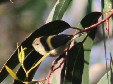 The Striated Thornbill can be distinguished from the similarly sized and shaped Brown Thornbill, A. pusilla, by its orange-brown cap streaked with white and by black streaking on its yellow-white underparts. In January this year we brought you a page of those Brown Thornbills found happy in the trees beside the yellow brick road at Avalon. It also has a thinner, higher pitched call than the Brown Thornbill and is more commonly found higher in trees. The Striated Thornbill pictured here was photographed at Ingleside and is found only in the south-eastern mainland of Australia from southern Queensland to eastern South Australia.
