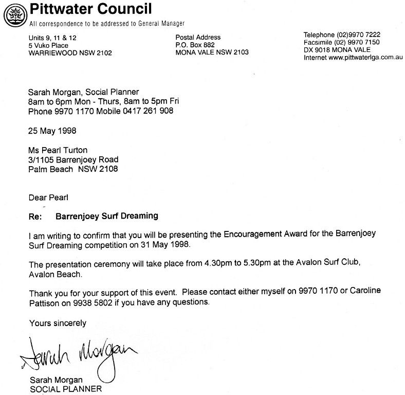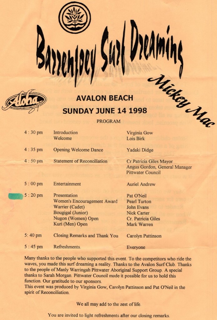 Pearl was there and some of the old surfers came up and said ‘what a great honour – if anyone deserved to give out the Citizenship certificates it’s Pearl of the Pacific – you can’t get anymore Australian than this – our Pearl.’