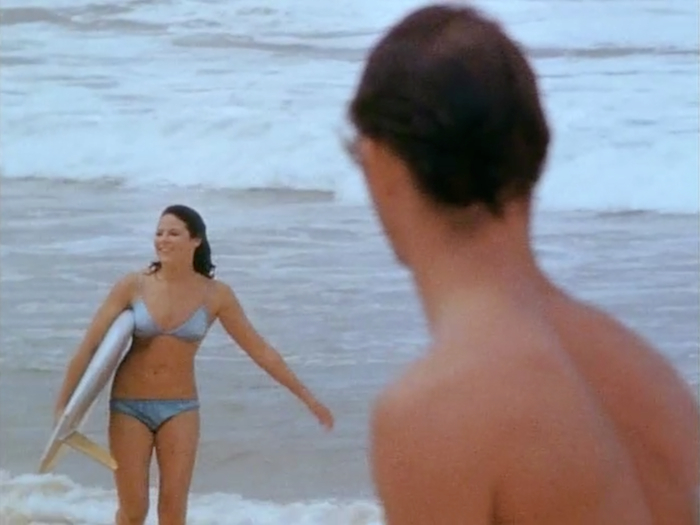 "They came into the chemist shop where I was working at Palm Beach and asked my boss if I could have some time off to go surfing," said Pearl, one of Australia's first female surfers in the post-1956 Malibu board era. "They said they were making a surf film I don’t even think they had a name for it and needed me to do some surfing." At the end of the scene Hynson, with a lecherous smile, drives off with Pearl as August is left disconsolate on the sand. It was an accurate depiction, said Pearl. He was dropping her back to work. Brown filmed Pearl kissing the two surfers but the scene was cut.