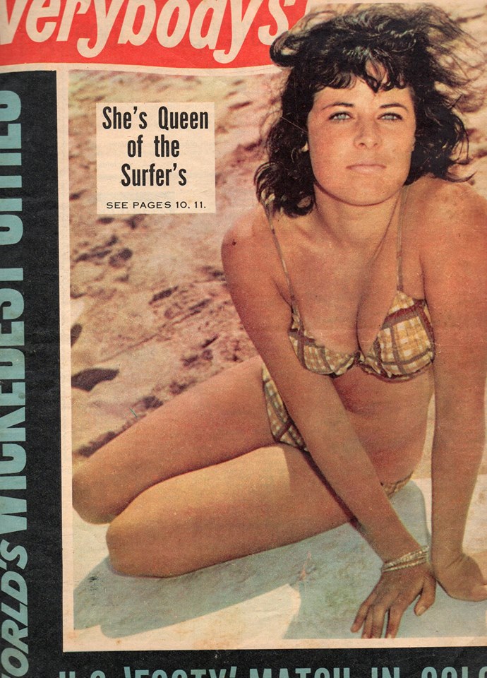 The 16 year old champion even starred in a live-to-air broadcast with Brian Henderson the host of Bandstand filmed at Avalon Beach SLSC during the height of ‘The Stomp’. Bandstand was a very hip music show back then. Pearl was interviewed wearing only her bikini;