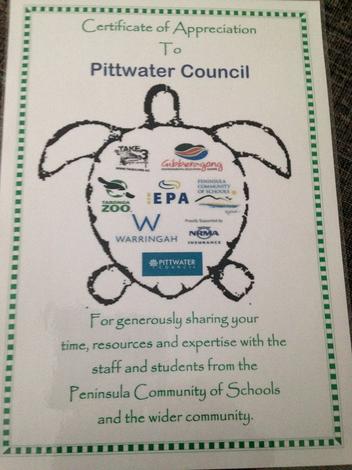 Pittwater Council has worked with the Peninsula Community of Schools and not-for-profit organisation ‘Take 3’ to deliver Project Green Sea turtle, made possible with assistance from NSW EPA’s (Environmental Protection Authority) Waste Less, Recycle More initiative funded from the waste levy,