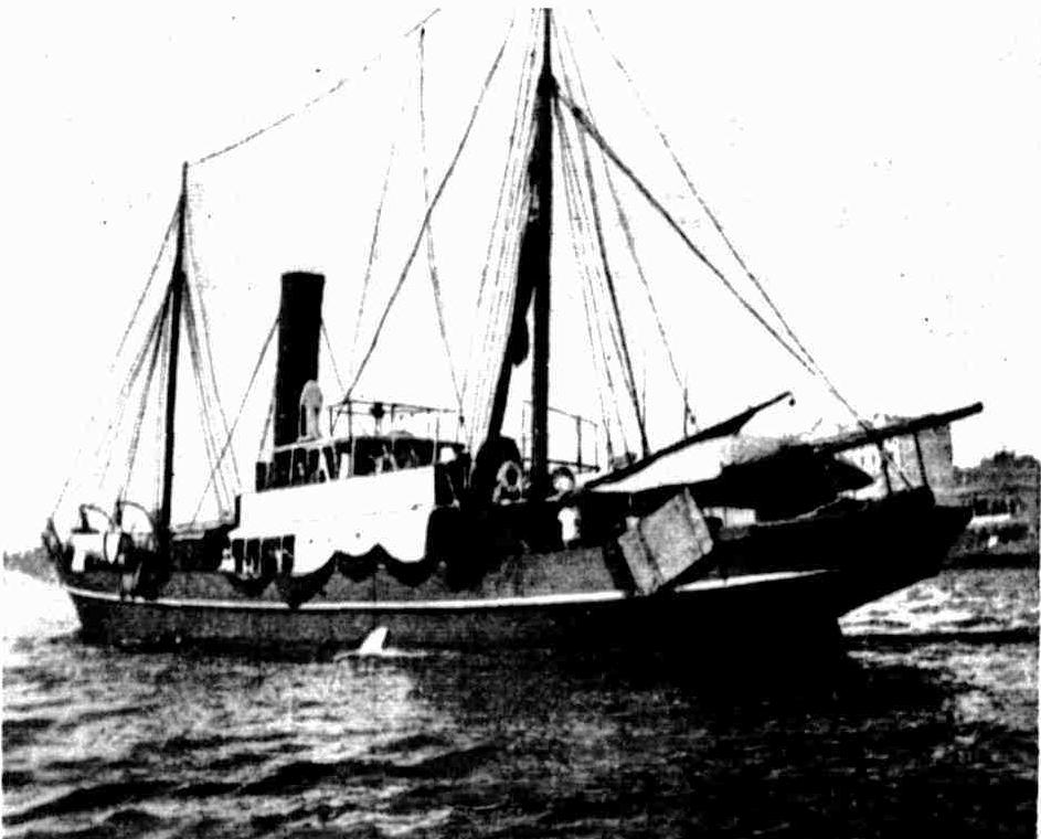 The conditions were that the race should start at 9 a.m. at Fort Macquarie, sail round a boat off Barrenjuee, and back to the starting place. The great interest in the contest was manifest by the number of steamers, yachts, and other smaller fry that either went the course or met the boats on their return trip. Captain Broomfield officiated as starter, and sent the pair away on their course punctually at 9 a.m., the steamers Princess of Wales and Mystery following with spectators. It was a calm at the time, but as the tide was sweeping out at a good rate, the boats drifted rather than sailed away towards Port Denison beam and beam. Both boats carried topsails and squaresails, and passing Port Denison Lottie was leading by a length. The booms then gybed from starboard to port, and in the run with a faint north-west wind Carlotta gained four lengths in the passage to Bradley's, rounded in 33 minutes from the start. Both boats again gybed wide of the point, but as the wind was creeping more northerly, squaresails were lowered.