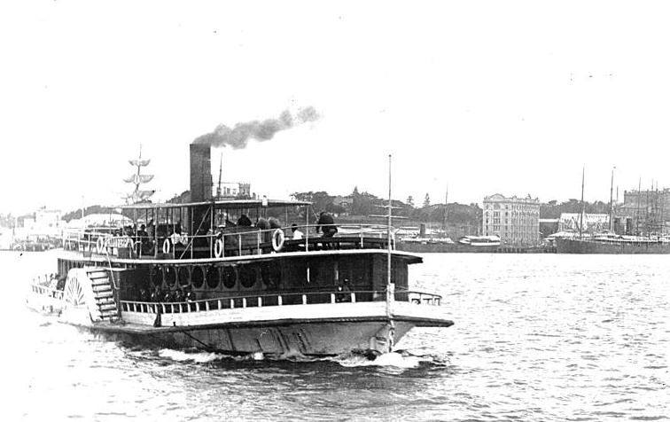 Wooden paddlewheel steam ship launched 1884. Cammeray was a steam ferry owned by the North Shore Steam Ferry Company (later Sydney Ferries Limited). By 1904 with many new screw steamers available, she had been largely withdrawn from active service and was mainly running excursion trips and by 1905 (along with the other paddlers) she was permanently laid up. It would appear she was offered for sale for by 1909 she could be found on the Hawkesbury River, owned by a Dr F Calder, operating five hour tours for five hundred people every Sunday from the Brooklyn railway station. These were organised by the NSWGR. Information courtesy of The Encyclopedia of Sydney Ferries website.