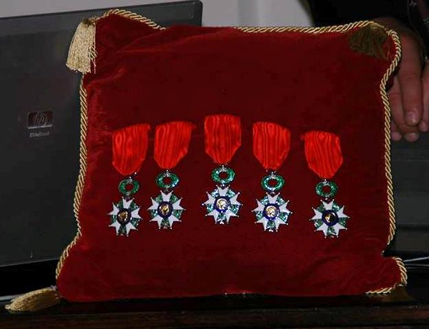 The Legion of Honour, or in full the National Order of the Legion of Honour (French: Ordre national de la Légion d'honneur) is a French order established by Napoleon Bonaparte on 19 May 1802. The Order is the highest decoration in France and is divided into five degrees: Chevalier (Knight), Officier (Officer), Commandeur (Commander), Grand Officier (Grand Officer), and Grand Croix (Grand Cross).