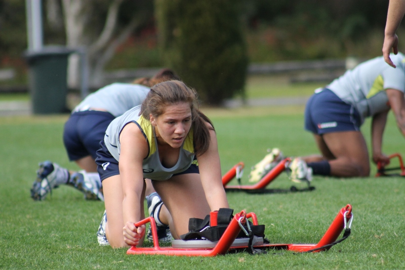 Report and QANTAS Australian Women's Sevens training images by A J Guesdon, 2014.
