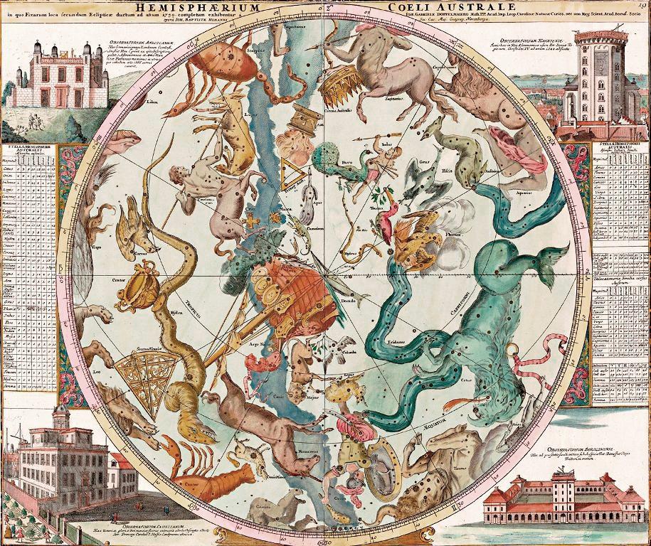 Doppelmayr, Johann Gabriel, 1671-1750. Hemisphaerium coeli australe in quo fixarum loca secundum eclipticae ductum ad anum 1730 [cartographic material] 1742. MAP RM 3532.http://nla.gov.au/nla.map-rm3532 pages 146-147