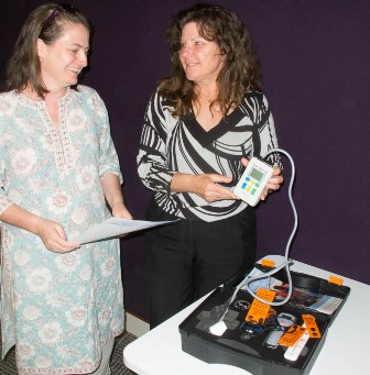 Left: Pittwater Council's Joanne Tulau demonstrates the contents of the Power Saver kit.