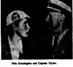 The fiancée is Miss Joyce Kennington, who had acted as Captain Taylor's agent for the most important stages of the South Pacific survey flight from Tahiti to Chile. Miss Kennington joined the survey plane Frigate Bird II at Papeete for the return flight. Miss Kennington, 22 years old and a schoolteacher, is the daughter of Mr. and Mrs. J. Kennington, of Prince's High-way, Arncliffe. She helped Captain Taylor in starting a primary school near his home at Pittwater. She later taught full-time at the school, which was attended by about 60 pupils, including Captain Taylor's two daughters by an earlier marriage. Captain Taylor is 54. His first wife died just before Christmas last year.