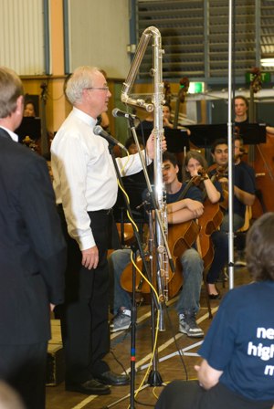 While New Trier and SNBSWE changed places on stage once more, a Contra Bass flute player with SNBSWE, Peter Scaysbrook, demonstrated the deep range of this enormous instrument and shared small insights into the history of the one he held, including that the one he held was 1 of only 6 in Australia. It was a wonderful evening, a huge night for Pittwater to have such a great group of people share their passion and talent through the language that dwells in the core of life. Music will ever speak truer then words, each note reinforces this. Those who have this for life as a skill, love, guide and discipline must be lucky for life too.