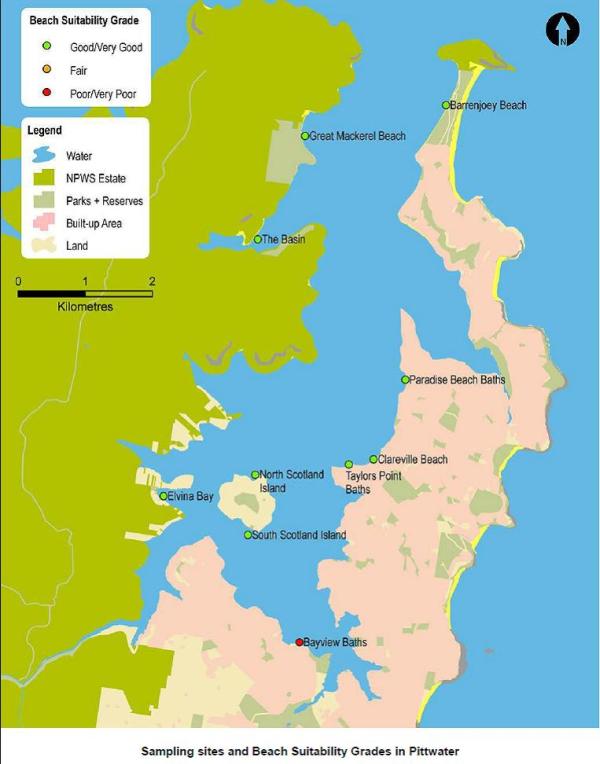 Swimming sites in NSW are graded as Very Good, Good, Fair, Poor or Very Poor in accordance with the National Health and Medical Research Council’s 2008 Guidelines for Managing Risks in Recreational Waters . These Beach Suitability Grades provide a long term assessment of how suitable a beach is for swimming. The grades are determined from the most recent 100 data water quality results (two to four years’ worth of data depending on the sampling frequency) and a risk assessment of potential pollution sources.