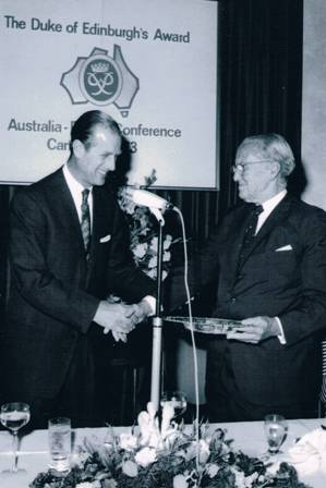 Presentation of a silver tray to Sir Adrian Curlewis CBE, national co-ordinator 1962-1973 by HRH The Duke of Edinburgh on behalf of the Award Scheme in Australia, 15th October, 1973.