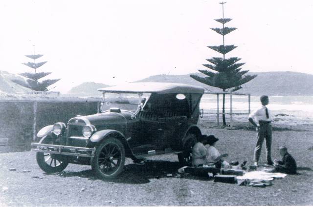 This early T Model Ford was one of the four cars to be seen at Palm Beach in the early 1900’s. In this photo Ethel and her sister Lilian and son were having a picnic whilst Adrian, looking out to sea, seems to be contemplating what lay ahead for him.