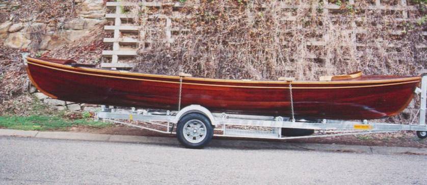 The boat was manufactured by the cold moulded process. The silver ash keel, stem, stringers and ribs were laid on a mould (frame). Three layers of cedar planks, 1/8 inch (3mm) thick by 4 inches (100mm) wide were laid up over the framing. The outer and inner layer, in diagonally opposite directions, and central layer perpendicular to the keel. Glue was used between the layers with thousands of staples temporarily holding the planks in place. The staples had to be painstakingly removed by a small hand tool.