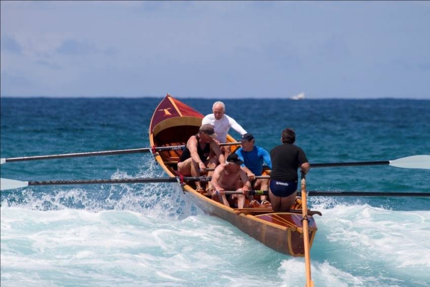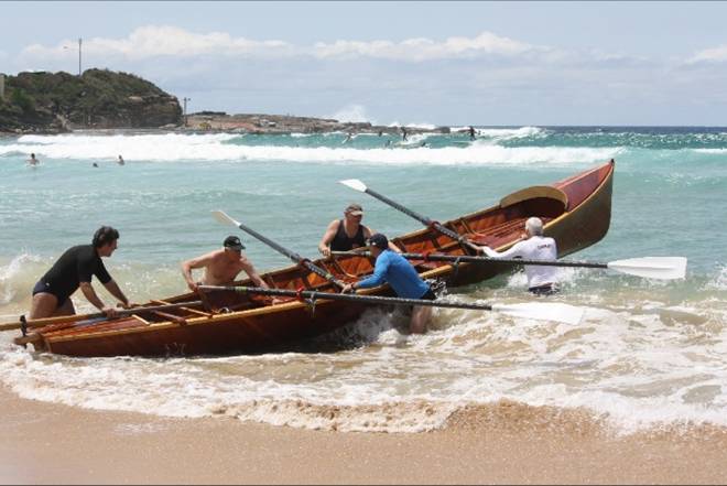 The 1971 Clymer boat has currently put to sea through the surf three times since being restored. On all occasions it was rowed by a crew of over 60 year olds including Les Watt, John Swan, Colin Scully, Kim Marsh and Ken Bucknall – each multiple Australian Surfboat Championship winners. Its first outing was to accompany a new surfboat christened the Kim ‘Clark’ Marsh at Freshwater Beach. The second was to scatter the ashes of former crewmate Christopher ‘The Bat’ Branson. Both times the boat was hit by large waves on the way to sea but punched through beautifully. The boat refused to return to the beach peacefully on its first two outings and selected waves that did it proud.