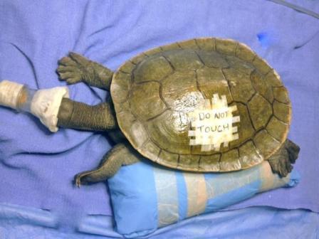 Dr Ralph was pondering how a little turtle could sustain such an injury. It looked like a blunt-instrument trauma. Or the result of a fall onto a protruding object.