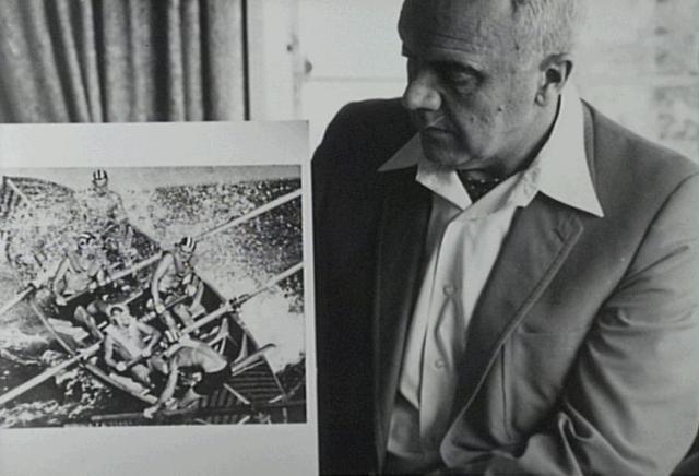 Ron Searl, who photographed and collated many of our Pittwater events won a prize for this image of the Warriewood surf boat in 1980. Below is this local gent with his photograph. Mr Searl is the father of highly respected resident historian Geoff Searl. Image courtesy Pittwater Local Studies Unit at Mona Vale Library.