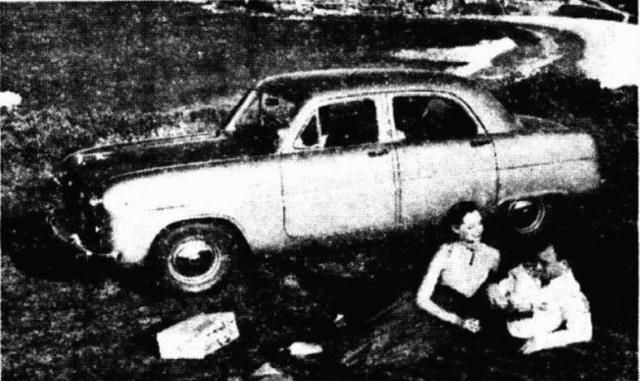 NEW FORD 6 HERE NEXT WEEK: The first six-cylinder car produced by Ford in Australia-the Zephyr-will be shown at Haig Motors, Mount Gambier, on Wednesday. Big brother to the Consul, the Zephyr Six is of a design and power performance that make it ideally suited to Australian conditions. The styling preserves the smooth-flowing lines of the bigger V8 Custom and smaller Consul. The Zephyr is seen (at right) on the headland overlooking picturesque Warriewood Beach, north of Sydney. Pretty picnicker is 17-year-old Jeanette Elphiek, chosen to star in the Australian film "Duwarra," now being produced in Central 'Australia. NEW FORD 6 HERE NEXT WEEK. (1952, August 2). Border Watch (Mount Gambier, SA : 1861 - 1954), p. 1. Retrieved fromhttp://nla.gov.au/nla.news-article80766482