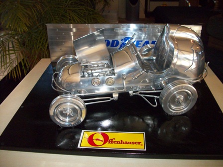 Hot Air Engines: These three engines are hot air engines. The one at the back is a low temperature differential hot air engine and it was made by one of our members, Alf Lang, who has since passed on. It relies on a temperature difference of about 3 to 5 degrees Celsius to work. The ivory box contains lamps that create heat and that heat is transferred to an air column inside the two discs. The top disc is a cold disc; so you have a hot area and a cold area; essentially using that difference we create a positive and negative pressure in that brass cylinder and that extracts energy from the changes in air temperature and pressure to drive the system.