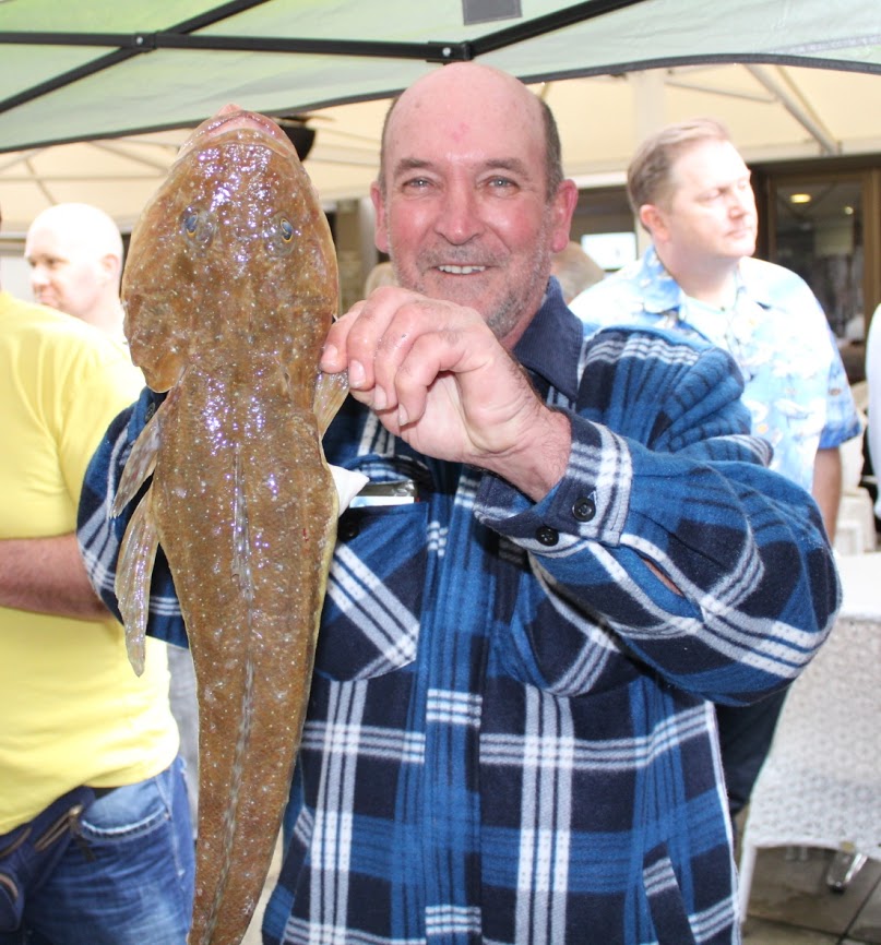 The Weigh In resumes with the last club’s members bringing forth their fish. Some beautiful colours – the spectacular orange and fanned wings with markings of the Gurnard, or what’s called a ‘Dusky’ flathead.